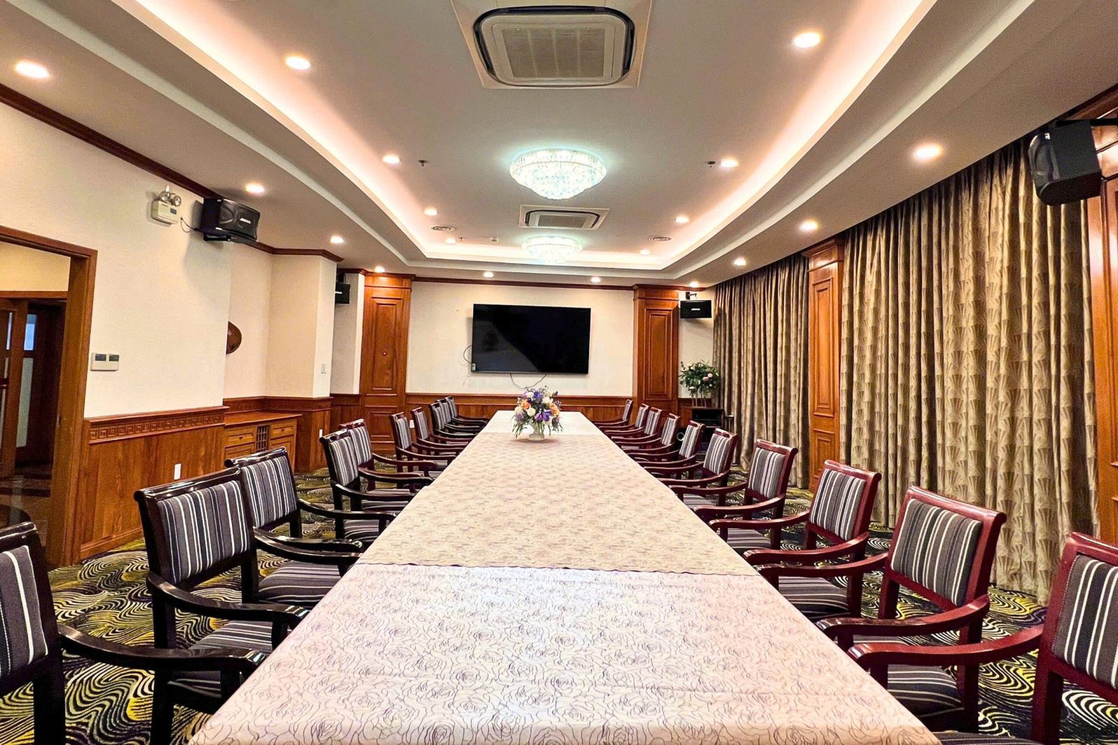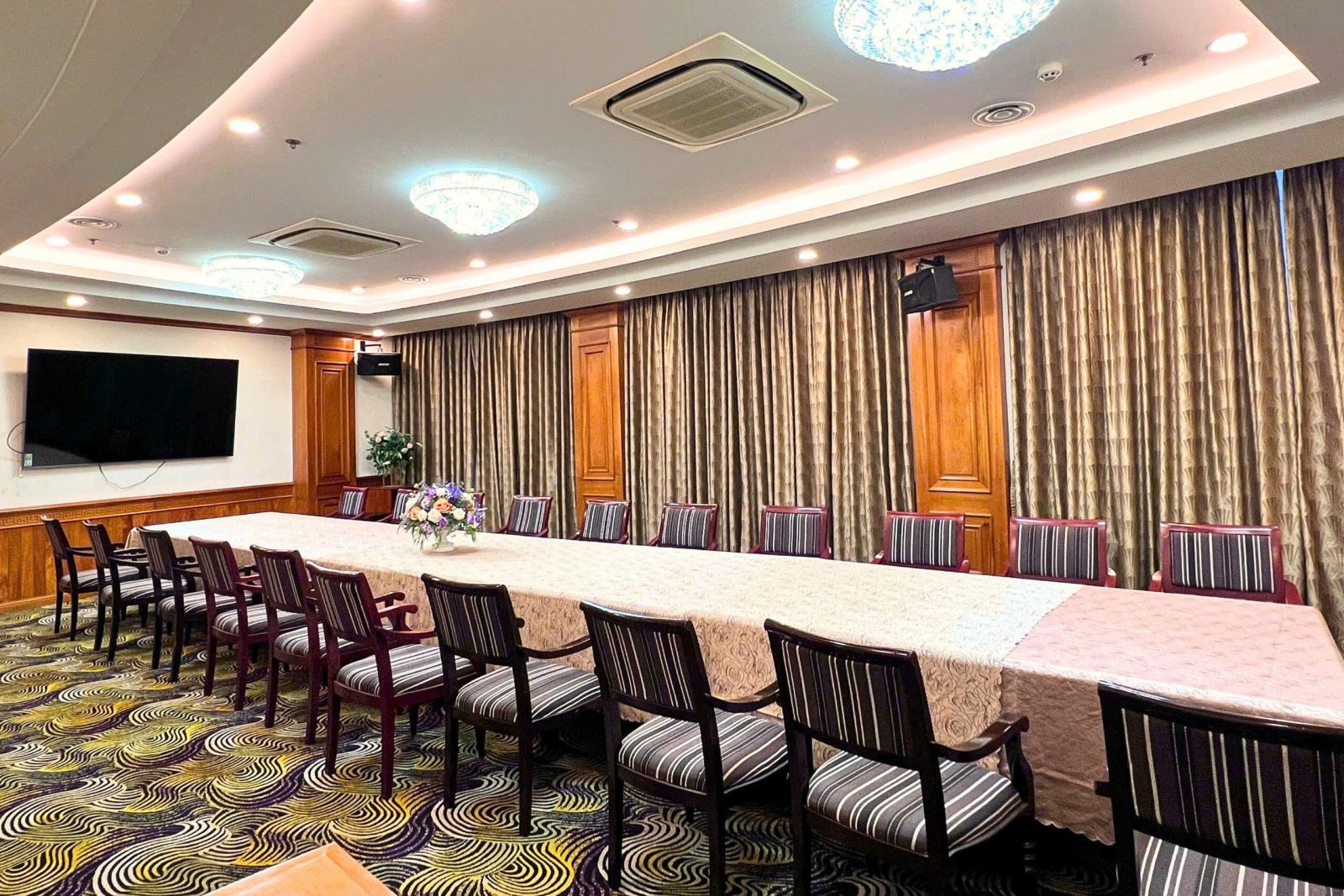 Tương tự Rose, phòng VIP Lotus được thiết kế dành cho những buổi tiệc và hội nghị quy mô vừa, đề cao sự riêng tư và cảm giác ấm cúng trong từng chi tiết. Không gian mang phong cách lịch sự, trang nhã, tạo nên bầu không khí gần gũi nhưng vẫn đủ trang trọng cho những dịp quan trọng.